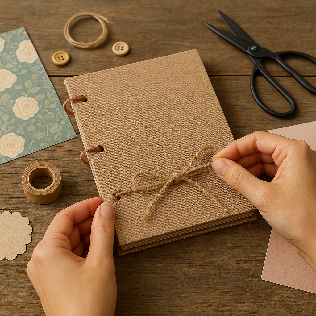 • Możesz zastosować sznurek lub ozdobną wstążkę do ręcznego szycia grzbietu, nawiązując do starych ksiąg oprawianych.