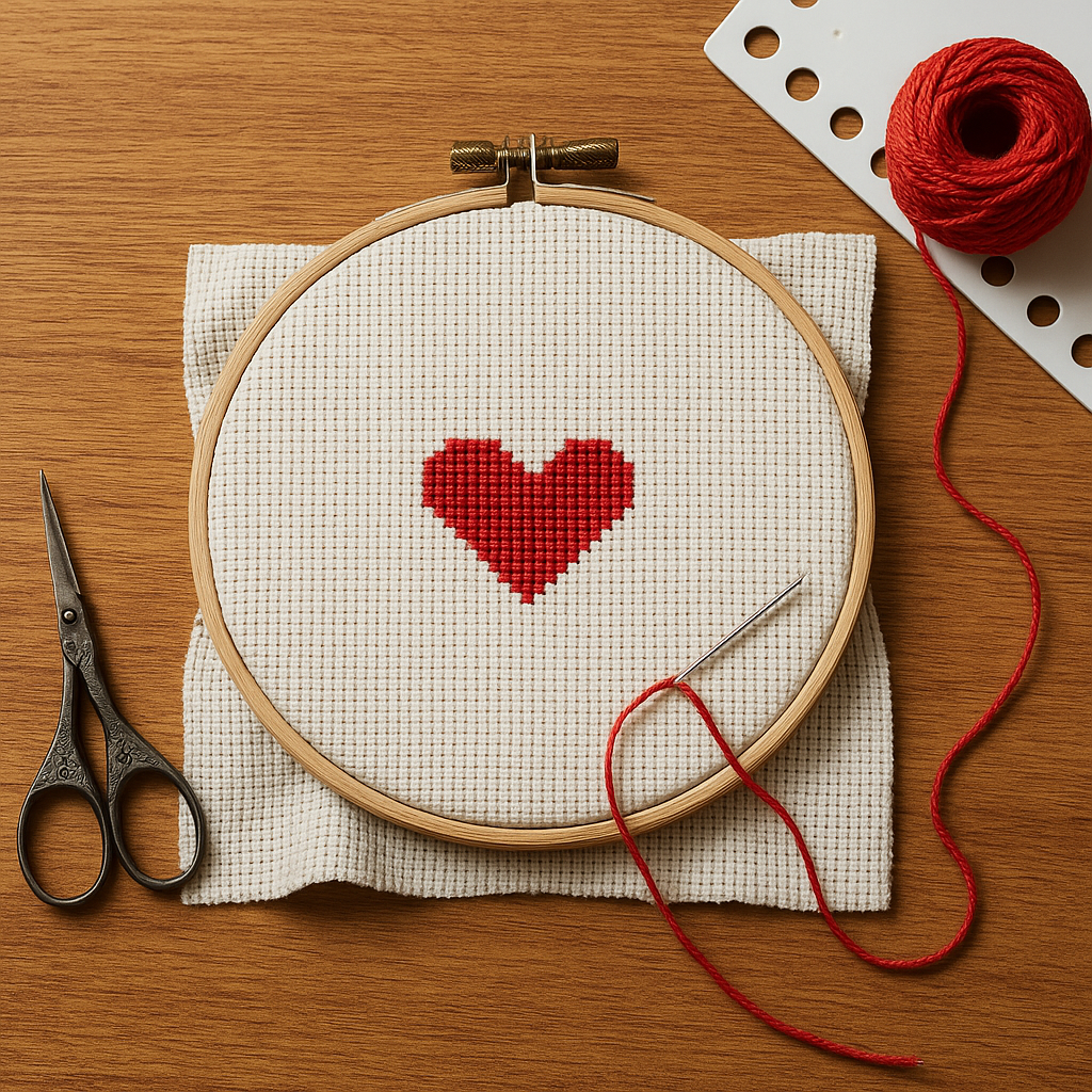 Pierwszym etapem jest wycięcie kawałka kanwy nieco większego niż docelowy wzór. Zabezpiecz krawędzie taśmą klejącą, aby zapobiec strzępieniu się materiału. Wybierz kolory muliny zgodnie z wybranym wzorem – popularne są motywy kwiatowe, serca czy geometryczne figury.